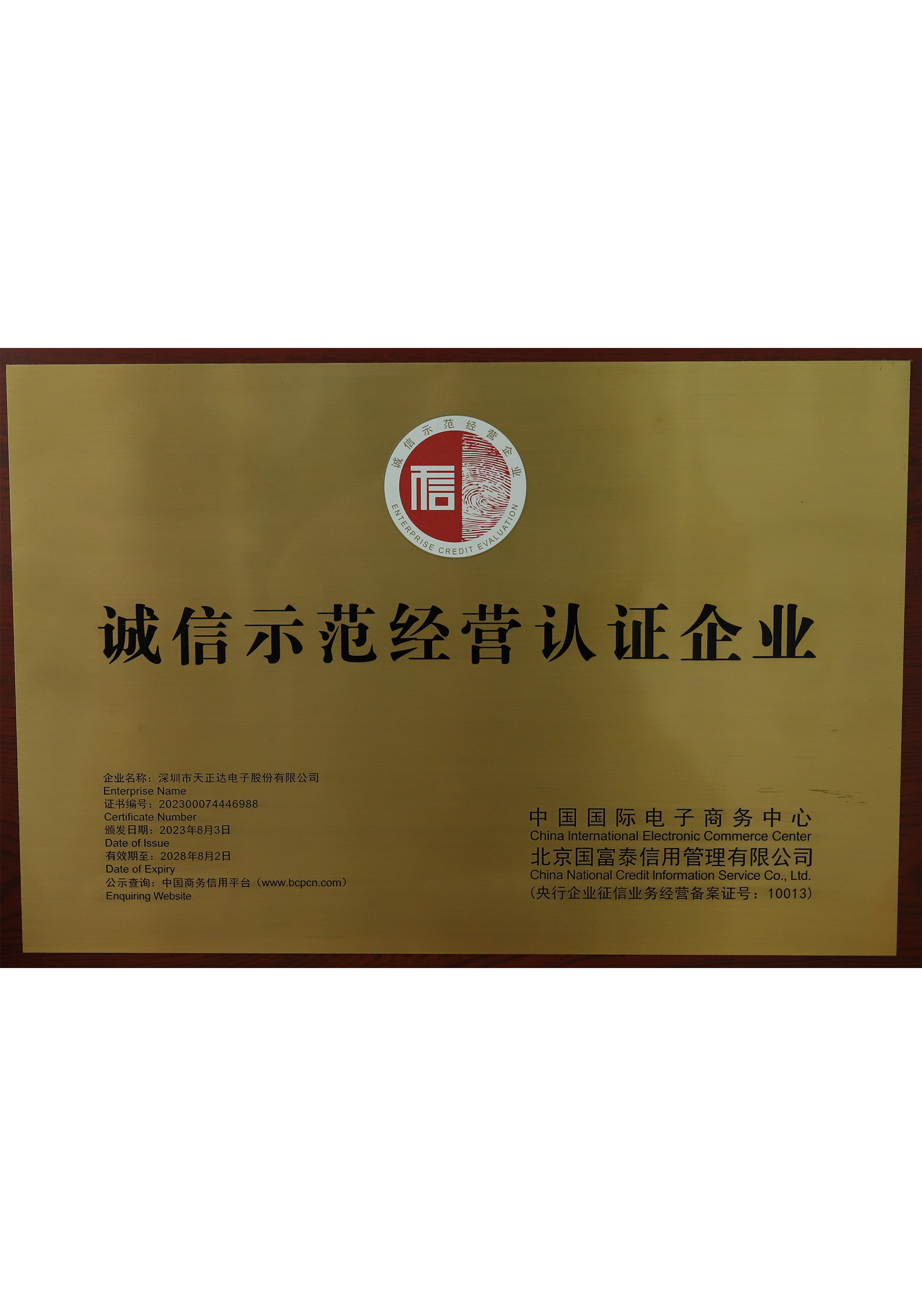 誠信示范經(jīng)營認(rèn)證企業(yè)