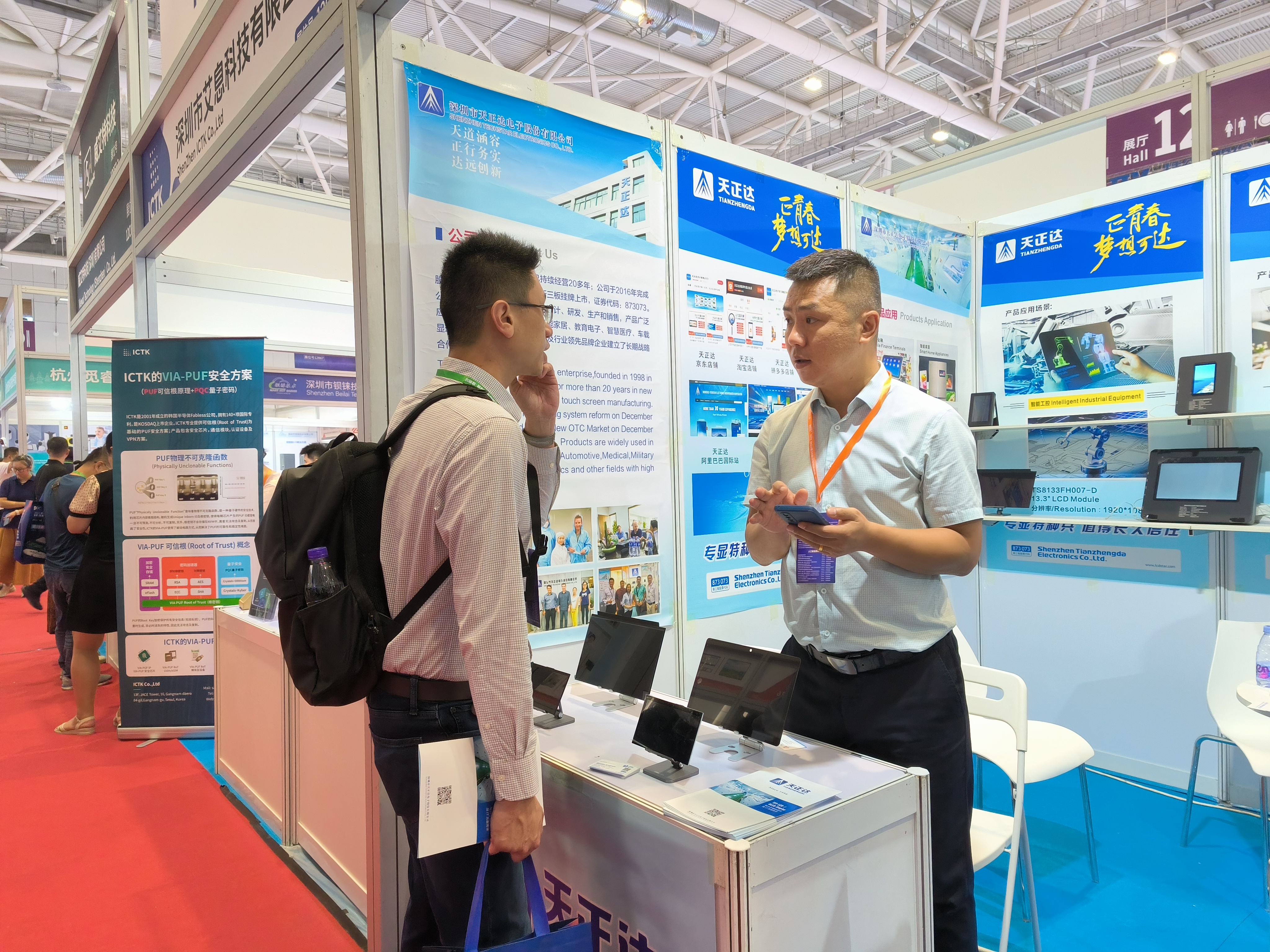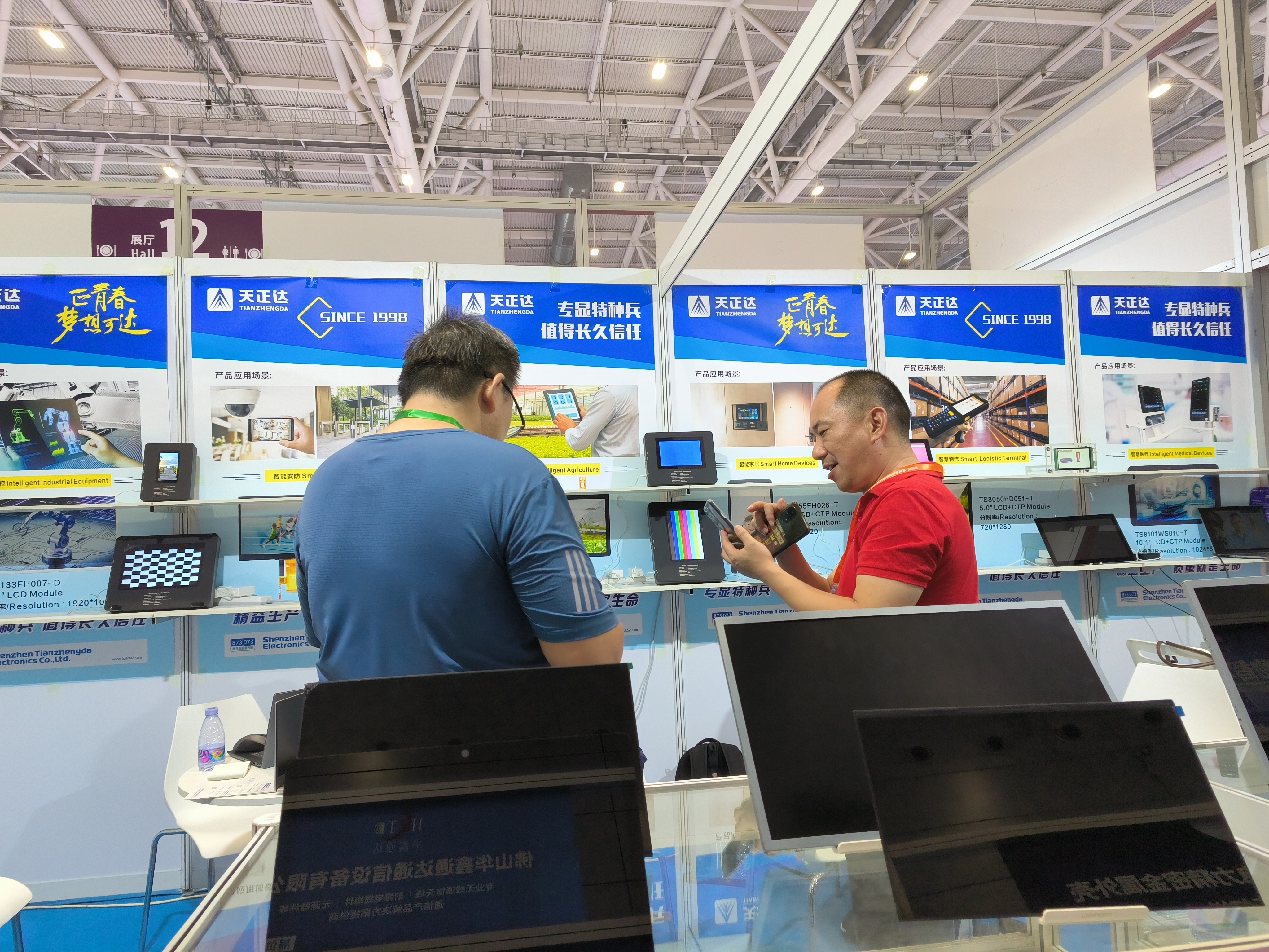 九點(diǎn)展會(huì)正式開始,天正達(dá)所在的12號(hào)展廳人聲鼎沸,有不少對(duì)液晶顯示器感興趣的客戶停下腳步,了解產(chǎn)品。